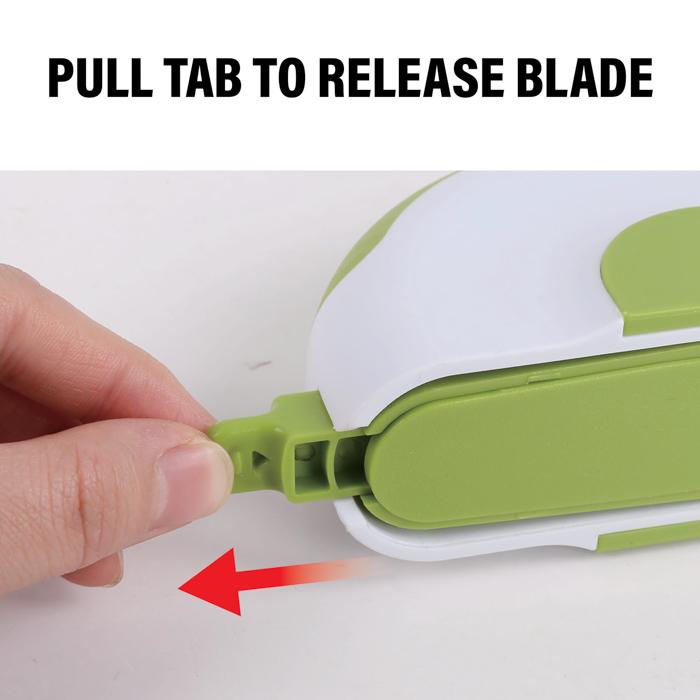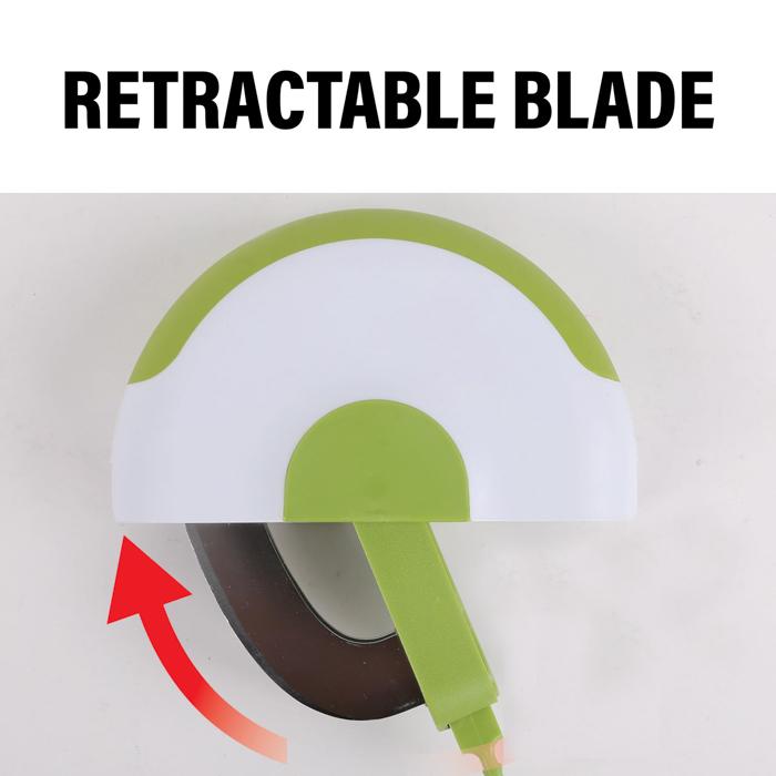 Two ultra-sharp, surgical stainless steel blades are fixed into the handle and retract into the unit for storage.
