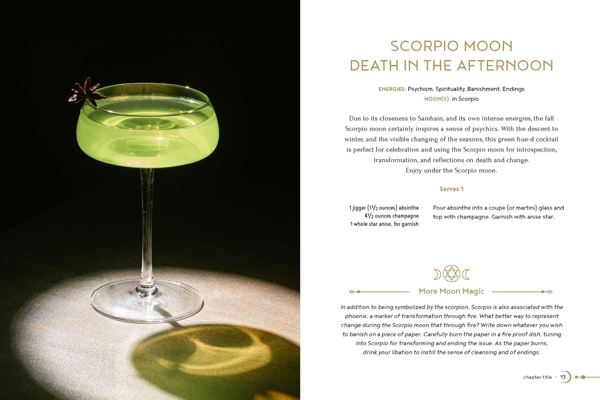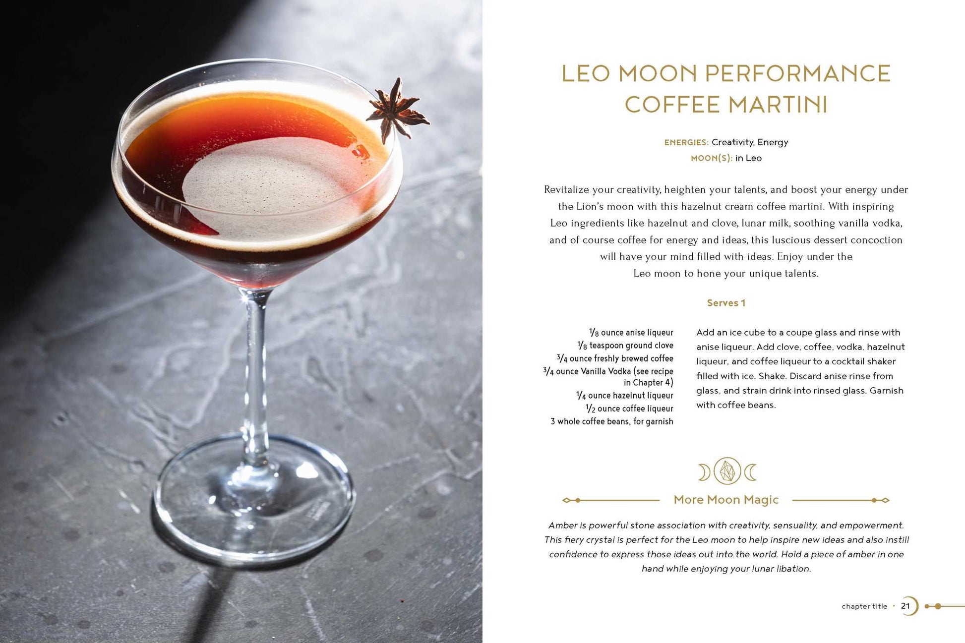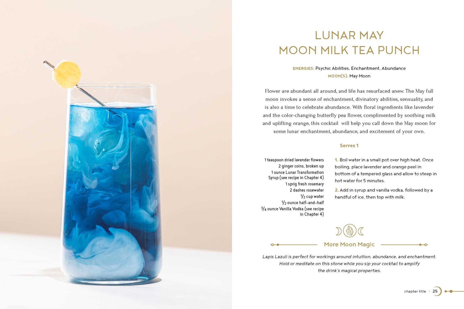 In Moon, Magic, Mixology, you’ll find 70 recipes for alcohol-based beverages that can be used to summon the moon for whatever you need. Each recipe is elevated by magical tools such as crystals, candles, herbs, aromatherapy, and meditations, helping you infuse magic into every drink. Whatever your moon desire, this book has you covered with full-color photos and tips on how to use your lunar libations to enhance your connection with the moon.